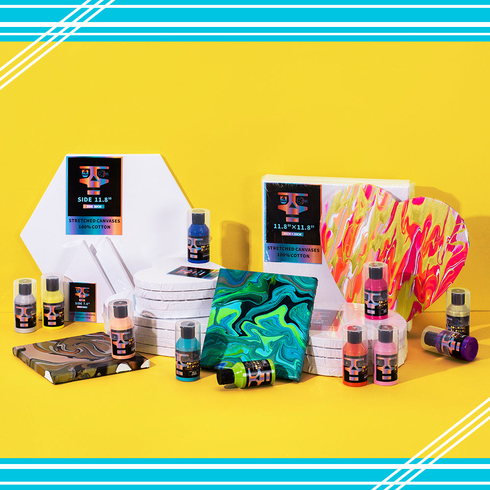 OPHIR 4X Hexagon Stretched Cotton Canvas Boards for Art Painting, Oil Acrylic Painting Canvases